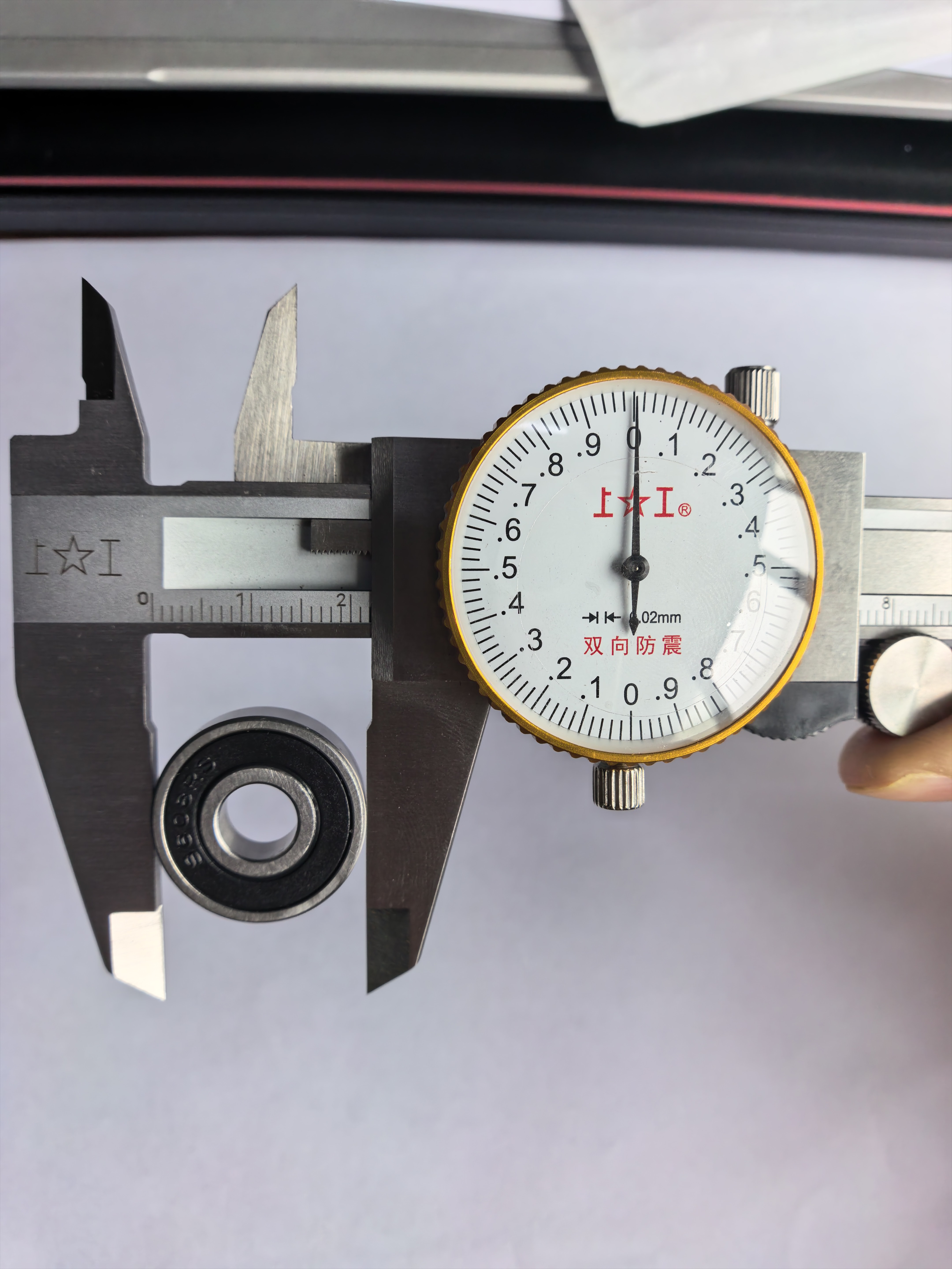 Fallanalys: ** S608-ZZ ** — Om du använder en bromsok för att mäta innerdiametern på ett litet lager och finner att det är ** 8 mm **, då – baserat på konventionerna för 3-siffriga lagerbeteckningar – motsvarar innerdiametern direkt suffixet på modellnumret. Preliminär bedömning: Suffixet för detta lager är ** 8 **. Genom att kombinera detta med den uppmätta ytterdiametern (22 mm) och bredden (7 mm), kan modellen bekräftas som det vanliga miniatyrlagret ** S608-ZZ **.
